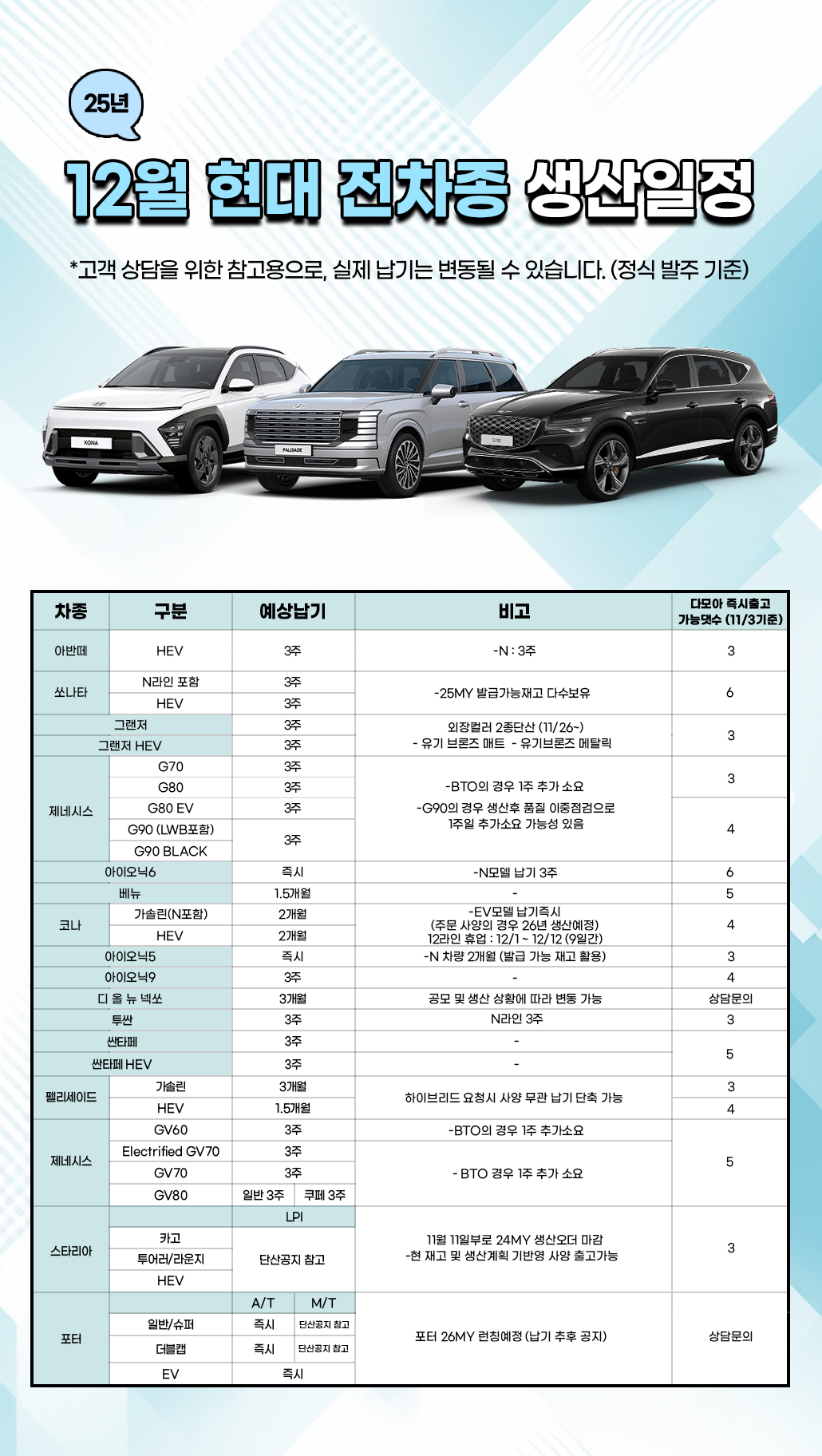12월 현대 생산일정♥